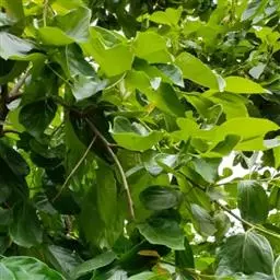 冬芽卵形,略扁,外面的芽鳞无毛,内面的密生棕色柔毛。叶纸质,长圆形、长圆状倒卵形、倒卵形,少为椭圆形,长6.5-17(20)厘米,宽3.5-10(12)厘米,先端短渐尖,基部圆形,或近圆形而两侧稍不等,或为宽楔形,边缘稍背卷,上面深绿色,下面绿色,老叶的上面变无毛,中脉在上面稍凹下,在下面凸起,侧脉每边7-9条,在上面微凹,上面稍凸起,小脉很纤细,结成小网状,上面微凹,下面微凸起,侧脉间有近横行的脉相连;叶柄长6-10毫米。