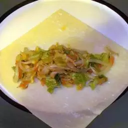 3、锅中热油,待六成热时,磕入鸡蛋,抄成鸡蛋碎,盛出备用;虾仁过开水汤熟