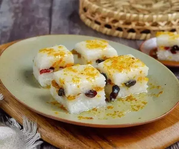 5、在米饭里拌上白糖,枸杞子和葡萄干;
