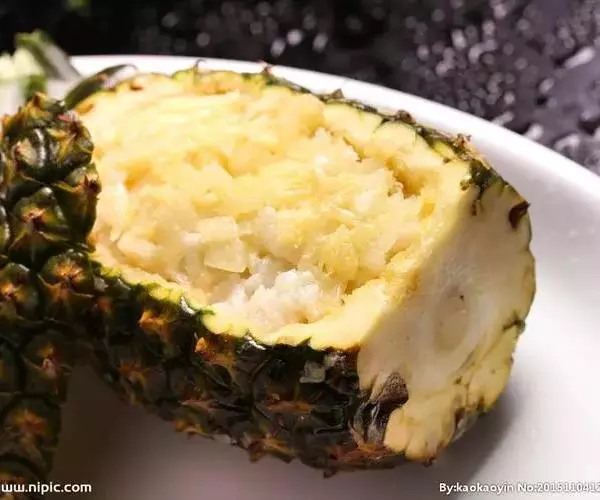 2、有过敏史的人最好不要吃。菠萝中含有一种致敏物质——菠萝朊酶,而盐水能破坏其致敏结构,所以菠萝切开后要在盐水中浸泡一下。