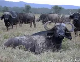 非洲野水牛:共有5个亚种。头体长2.1-3.4米,身高1-1.7米,体重300-900千克。胸膛宽…