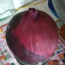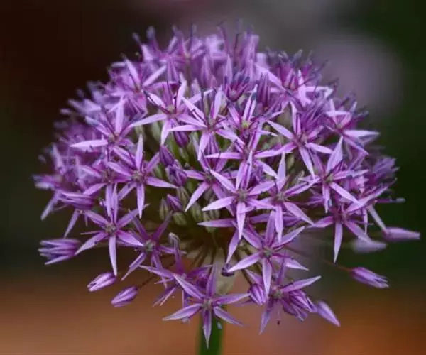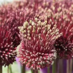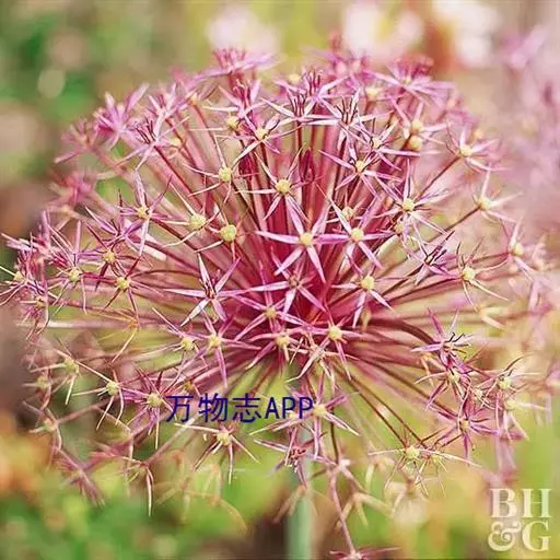 开花鳞茎重30克左右,直径约3厘米,生长须根80-90条。花、果实及种子密集的伞形花序呈头状,着生于花尊顶端,花覃自叶丛中抽出,高达12.5厘米;花序由2000-3000朵星状开展的小花组成,花序硕大如头,直径可达18厘米,故名。其花色紫红,色彩艳丽,小花紫红色,具长柄,花瓣6枚,呈两轮排列。