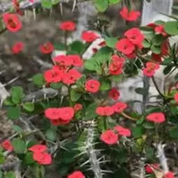 虎刺梅:别称铁海棠,是蔓生灌木植物。茎多分枝,长60-100厘米,直径5-10毫米,具纵棱,密生硬…