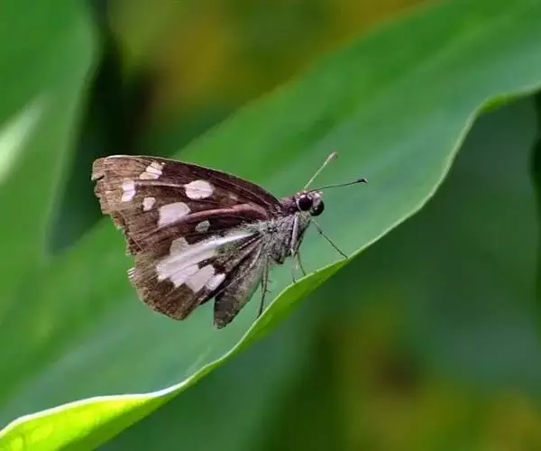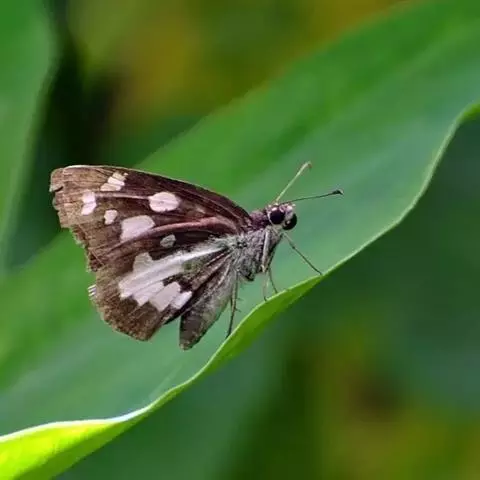 姜弄蝶 Udaspes folus ,又叫银斑姜蝶。幼虫吐丝粘叶成苞,隐藏其中取食,…