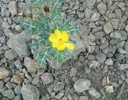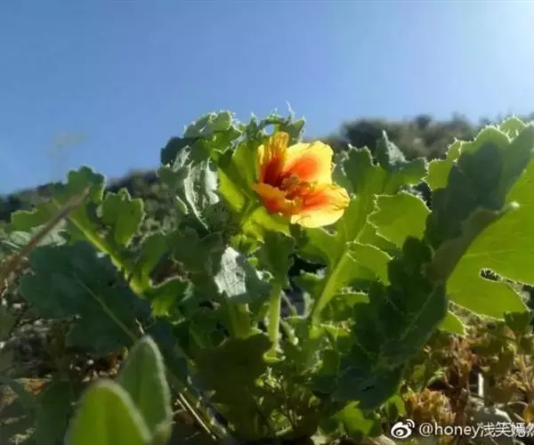 一年生草本,高约30厘米或更高。茎直立,不分枝。基生叶轮廓狭倒披针形,长7-10厘米,大头羽状深裂,下部裂片三角形,上部裂片卵形,具不规则的粗齿,顶生裂片近四方形,上端具粗齿;叶柄扁平;茎生叶宽长圆形,长1-3厘米,羽状分裂,裂片渐尖,基部心形、抱茎。花单个顶生,具长而粗壮的花梗;苞片宽卵形,具粗齿。花芽纺锤形,长1.5-2厘米,粗约5毫米,外面光滑;花瓣长约2厘米,橙黄色,具斑点。蒴果线状圆柱形,长12-18厘米,疏被紧贴、乳突状皮刺,成熟时自先端向基部开裂;果梗极长。花果期6-10月。