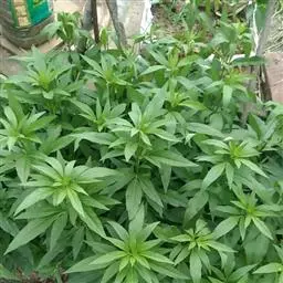 6、追肥:苗高30~40厘米时,可把茎下部的老叶去掉,摘去顶尖,促其多分枝。此时,每667平方米施饼肥40千克,可顺行开沟,把肥料撒入沟内,覆土,浇水。高温多雨季节注意排水。