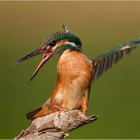 绿鱼狗是佛法僧目翠鸟科的鸟类。成年雄鸟,额头和眼先是黑色,头顶端深绿色呈古铜光泽。翅膀羽毛有白色斑…