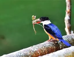 白腹鱼狗是佛法僧目翠鸟科的鸟类。前额和头顶部是深蓝色羽毛,底部和分尾完全是白色的,或多或少有浅黄色…