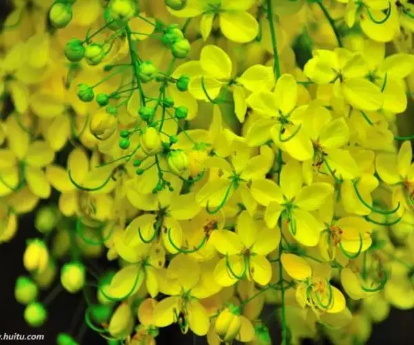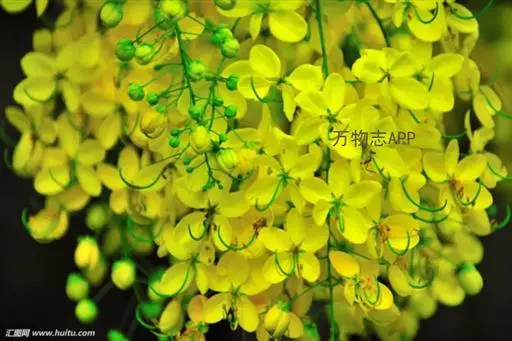 花期在5月,初夏满树金黄色花,花序随风摇曳、花瓣随风而如雨落,所以又名“黄金雨”。