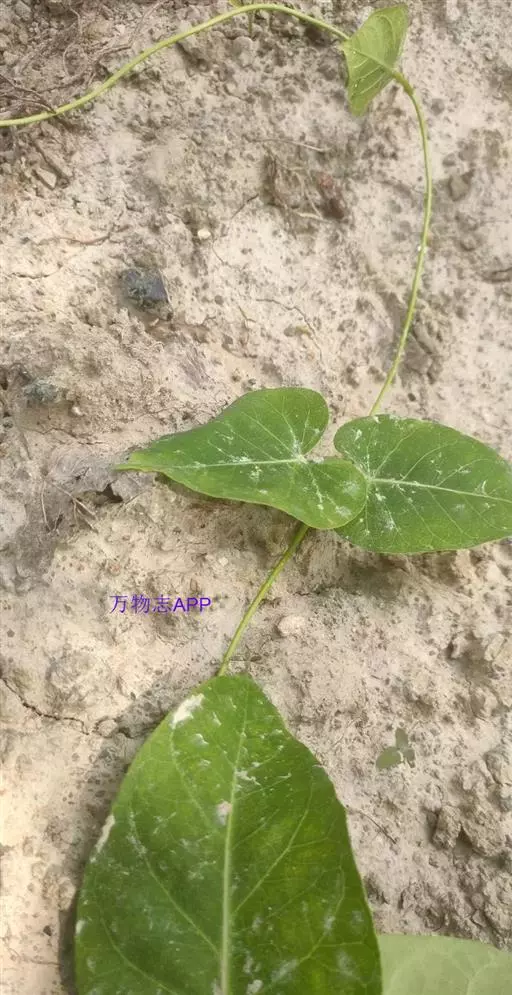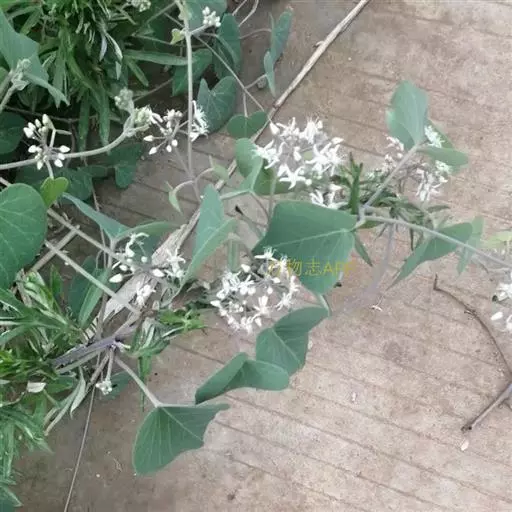 缠绕草本;主根圆柱状,长约20厘米,直径约5毫米,干后灰黄色;全株被短柔毛。叶对生,薄纸质,宽三角状心形,长4-9厘米,宽4-7厘米,顶端锐尖,基部心形,叶面深绿色,叶背苍白色,两面均被短柔毛,脉上较密;侧脉约10对,在叶背略为隆起。伞形聚伞花序腋生,两歧,着花约20朵;花萼外面被柔毛;花冠白色,裂片长圆状披针形;副花冠二形,杯状,上端裂成10个丝状体,分为两轮,外轮约与花冠裂片等长,内轮略短;花粉块每室1个,下垂;花柱头略为突起,顶端2裂。蓇葖双生或仅有1个发育,细圆柱状,向端部渐尖,长11厘米,直径5毫米;种子长圆形;种毛白色绢质。花期6-8月,果期8-10月。