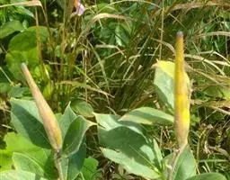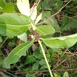 茎中的白色浆乳汁及根。