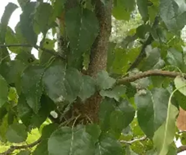 菩提树 大乔木,幼时附生于其他树上,高达15-25米,胸径30-50厘米;树皮灰色,平滑或微具纵纹,冠幅广展;小枝灰褐色,幼时被微柔毛。