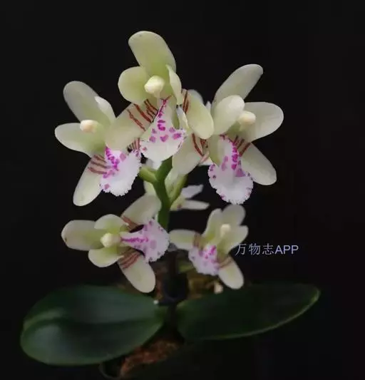 风兰 H.H.Hu):植株高8-10厘米。茎长1-4厘米,稍扁,被叶鞘所包。叶厚革质,狭长圆状镰刀形。…