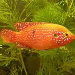 红宝石鱼是鲈行目慈鲷科伴丽鱼属 鱼类,又名红花鲈、宝石鱼。个体较大,身长12—15厘米。背鳍宽大,…