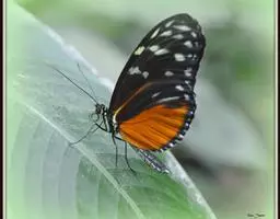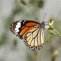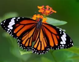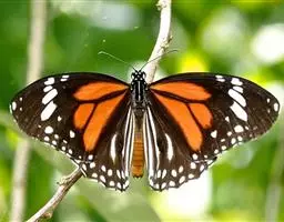 黑脉金斑蝶:翅阔8.6-12.4厘米。雄蝶较雌蝶为大。成年蝶颜色鲜艳,翅膀上有显眼的橙色及黑色斑纹…