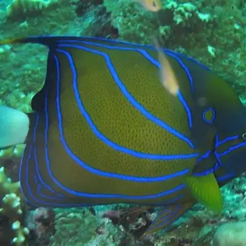 环纹刺盖鱼或称肩环刺盖鱼,别称蓝环神仙或白尾蓝纹神仙,成鱼尾鳍白色,肩部有一个蓝色圆环,体侧则有数…