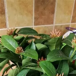 栀子花,花朵簇状约30枚瓣,奶油色,中心黄色;花径12cm;气味果香.