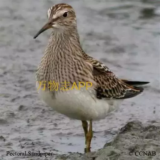 斑胸滨鹬(学名:Calidris melanotos)小中型涉禽;体长23厘米,翼展37-45厘米,体重126克。嘴形直,有时微向上或向下弯曲;鼻沟长度远超过上嘴的1/2;羽色暗淡,雌雄羽色及大小大都相同;跗蹠后侧具盾状鳞,前缘亦具盾状鳞;趾不具瓣蹼。体羽多具褐色杂斑,腿黄,嘴具两色并略为下弯,胸部纵纹密布并突然中止于白色腹部。白色眉纹模糊,顶冠近褐。繁殖期雄鸟胸部偏黑。栖息于海岸、沼泽、河川等地。飞翔力强,飞行时颈与脚均伸直。取食甲壳动物、昆虫和植物。栖于沿海滩涂及近海的稻田和鱼塘。通常与其他滨鹬及鹬类混群。潮落时跑至泥里翻找食物。休息时单脚站在沙坑,飞行迅速,成密集群。繁殖于西伯利亚东北部楚利奇半岛和北美洲北部北极地带。越冬于南美洲、美国东西海岸、夏威夷群岛、澳大利亚、太平洋中岛屿,偶尔到日本。