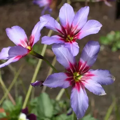 花3-11朵簇生,花梗长1-2厘米,无毛或疏被粗毛;小苞片3,长圆形,长3-4毫米,宽1-2毫米,先端圆形,疏被柔毛;萼状,长6-7毫米,萼裂片5,宽三角形,两面均被星状疏柔毛;花紫红色或白色,直径3.5-4厘米,花瓣5,匙形,长2厘米,先端微缺,爪具髯毛;雄蕊柱长8-10毫米,被刺毛,花丝无毛;花柱分枝9-11,被微细毛。