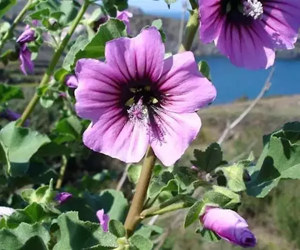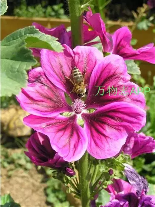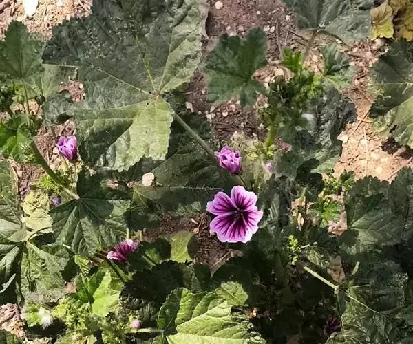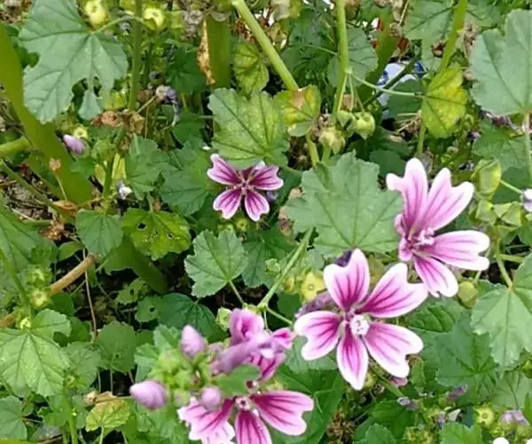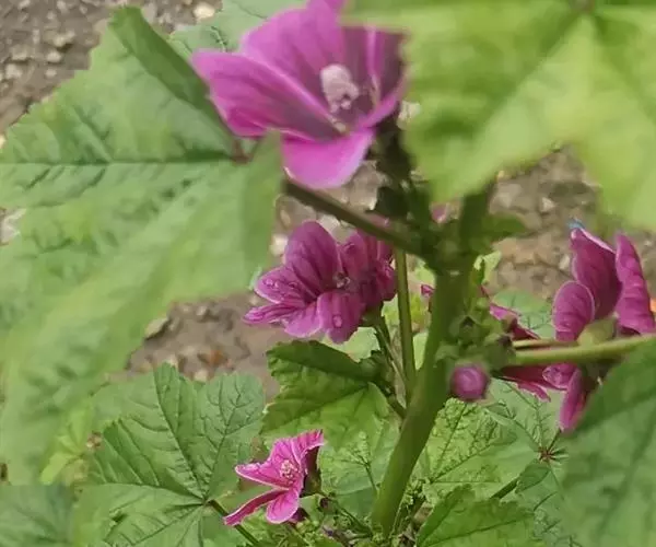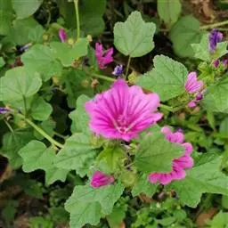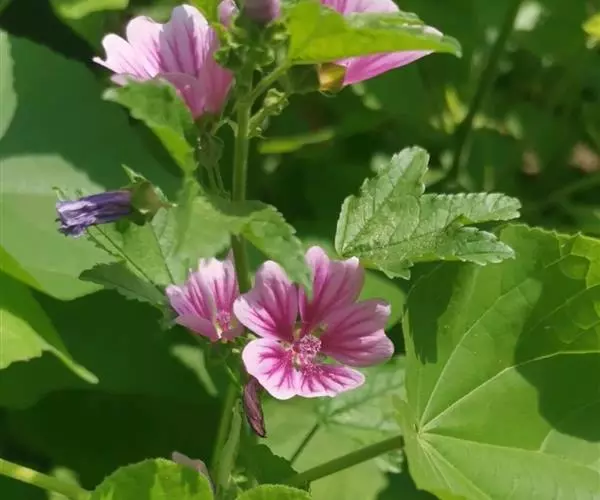锦葵(学名:Malva sinensis Cavan.):二年生或多年生直立草本,高50-90厘米,分枝多,疏被粗毛。叶圆心形或肾形,具5-7圆齿状钝裂片,两面均无毛或仅脉上疏被短糙伏毛。花3-11朵簇生,小苞片3,长圆形疏被柔毛;花紫红色或白色,直径3.5-4厘米,花瓣5,匙形,长2厘米,先端微缺,爪具髯毛。果扁圆形,分果爿9-11,肾形,被柔毛;种子黑褐色,肾形,长2毫米。花期5-10月。