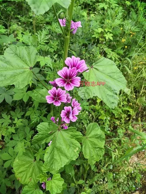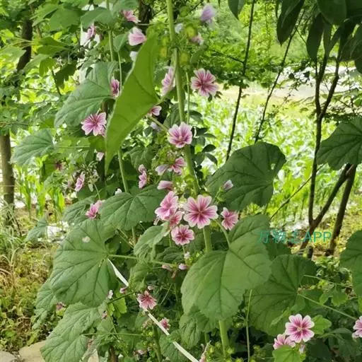 锦葵是二年生或多年生直立草本植物,高50-90厘米,分枝多,疏被粗毛。叶圆心形或肾形,具5-7圆齿状钝裂片,长5-12厘米,宽几相等,基部近心形至圆形,边缘具圆锯齿,两面均无毛或仅脉上疏被短糙伏毛;叶柄长4-8厘米,近无毛,但上面槽内被长硬毛;托叶偏斜,卵形,具锯齿,先端渐尖。