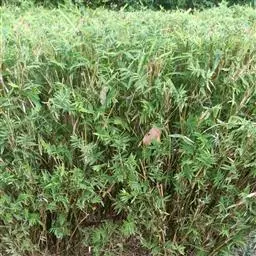 凤尾竹 Raeusch. ex Schult. ’Fernleaf’ R. A. Young)是禾本科,簕竹属孝顺竹的变种。植株较高大,杆高可达6米,竿中空,小枝稍下弯,下部挺直,绿色;竿壁稍薄;节处稍隆起,无毛;叶鞘无毛,纵肋稍隆起,背部具脊;叶耳肾形,边缘具波曲状细长繸毛;叶舌圆拱形,叶片线形,上表面无毛,下表面粉绿而密被短柔毛,小穗含小花,中间小花为两性;外稃两侧稍不对称,长圆状披针形,先端急尖;内稃线形,脊上被短纤毛,花药紫色,子房卵球形,羽毛状。成熟颖果未见。原产中国,华东、华南、西南以至台湾、香港均有栽培。凤尾竹喜温暖、湿润和阳光充足的环境,耐寒。宜土层深厚、肥沃、疏松的微酸性壤土。该种观赏价值较高,宜作庭院丛栽,也可作盆景植物。全草或根入药,味淡、微苦,性寒,有清热利湿、凉血止血、消肿解毒功效,可治痢疾、泄泻等多种病症。凤尾