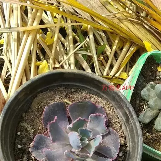 外形雍容大气,阳光充足时颜色呈紫红色,叶片宽大,微微向内卷起,表面有一层细细的粉。