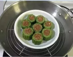 2、切好的南瓜片整齐放入盘里,加入蜜枣、枸杞、白果、生姜片,入蒸笼蒸15分钟。