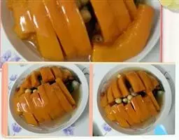 3、取出、去掉生姜片,轻轻扣入海碗里,