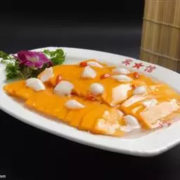 用陕北优质八棱南瓜,削皮去籽,平刨两半,在顺天然瓜沟切成若干小瓣,拼复完整,入锅蒸熟后,浇以糖汁。口感绵软,香甜怡人。