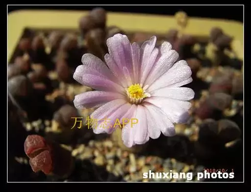 生石花,番杏科生石花属多年生肉质草本植物。植株几乎无茎;花朵较大,颜色艳丽,呈多边形,…