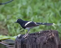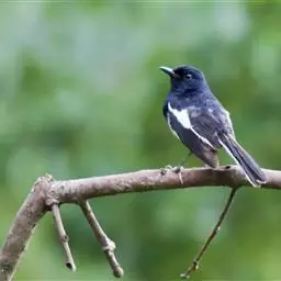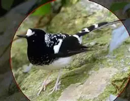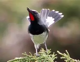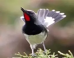 白喉红尾鸲,小型鸟类,体长14-16厘米。雄鸟额至枕钴蓝色,头侧、背、两翅和尾黑色,翅上有一大形白斑,…