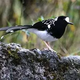 斑背燕尾是鹟科、燕尾属中型鸟类,体长24-25厘米。额至头顶前部白色,其余头、颏、喉、胸黑色,…