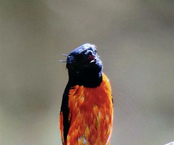 单音的tic声。告警时在栖处或飞行中不停地轻声重复ee-tit, ti-tit。鸣声为一连串甜润的颤音及粗喘声,似赭红尾鸲但喘声较少。
