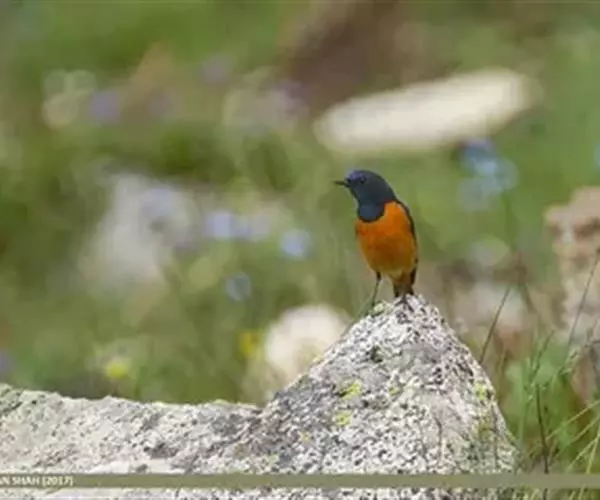 蓝额红尾鸲(学名:Phoenicurus frontalis)体长14-16厘米。雄鸟夏羽前额和一短眉纹辉蓝色,头顶、头侧、后颈、颈侧、背、肩、两翅小覆羽和中覆羽以及颏、喉和上胸概为黑色具蓝色金属光泽。主要以甲虫、蝗虫、毛虫、蚂蚁、鳞翅目幼虫等昆虫为食,也吃少量植物果实与种子。繁殖期5月末至8月初。