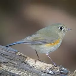 蓝额红尾鸲 小型鸟类,体长14-16厘米。雄鸟夏羽前额和一短眉纹辉蓝色,头顶、头侧、后颈、颈侧、背、肩、两翅小覆羽和中覆羽以及颏、喉和上胸概为黑色具蓝色金属光泽。其中小覆羽和中覆羽较深呈暗蓝色,腰、尾上覆羽和下体余部橙棕色或棕色,两翅飞羽和大覆羽暗褐色,羽缘淡褐色,中央尾羽黑色,外侧尾羽橙棕色或棕色具宽阔的黑色端斑。冬羽和夏羽大致相似,但头顶至背等黑色部分各羽均具棕色羽端,两翅覆羽和飞羽亦具宽阔的棕色羽缘。 雌鸟头顶至背棕褐色或暗棕褐色,腰和尾上覆羽栗棕色或棕色,中央尾羽黑褐色,外侧尾羽栗棕色具黑褐色端斑。眼圈棕白色,两翅褐色具棕黄色羽缘。头侧、颈侧、颏、喉、胸淡棕褐色,腹至尾下覆羽橙棕色。 虹膜暗褐色,嘴、脚黑色。