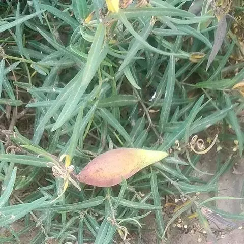 唐棉,株形直立,全株具白色乳汁;叶:线形似柳叶,色浓绿,背面淡绿色,对生;花:繖形花序,腋生,乳白…