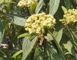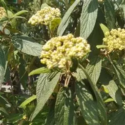 皱叶荚蒾是五福花科荚蒾属的小乔木植物。植株高达4米;叶柄及花序均被由黄白色、黄褐色或红褐色簇状毛组成的厚绒毛;小枝粗壮,稍有棱角;叶革质,卵状矩圆形至卵状披针形;聚伞花序稠密,总花梗粗,四角状,花冠呈现白色,雄蕊高出花冠;果实红色,后变黑色,宽椭圆形,无毛;花期为4-5月;果熟期为9-10月。皱叶荚蒾原产于中国,分布于陕西、湖北、四川及贵州等地。生长于山坡林下或灌丛中,海拔800-2400米。其性喜好阳光,耐半阴,喜温暖,有一定的耐寒性,喜湿润,不耐涝,耐中度盐碱,但在深厚肥沃、排水良好的中性或微酸性沙质土壤中生长更好,耐修剪,生长缓慢。其一般的繁殖方式为播种和扦插繁殖。皱叶荚蒾味苦,性凉。具有清热解毒、凉血止血的功效。可用于湿热痢疾、痈疽疮疖、咳血、吐血、便血、跌打损伤等疾病。皱叶荚蒾给人以郁郁葱葱的景象,全年观叶、春季观花