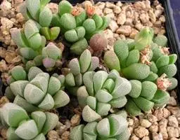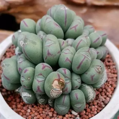 清姬是肉锥属里的中小型品种,植株表面纹路清晰,椭圆。植株非常肉质,老株常密集成丛。叶浅绿,顶端网路绿色。光照充足的时候纹路会变红色至紫红色。