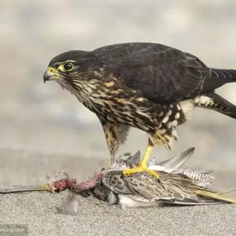 燕隼:是隼科、隼属的鸟类。体长约36厘米,体重140-340克。体形比猎隼、游隼等都小,为小型猛禽,…
