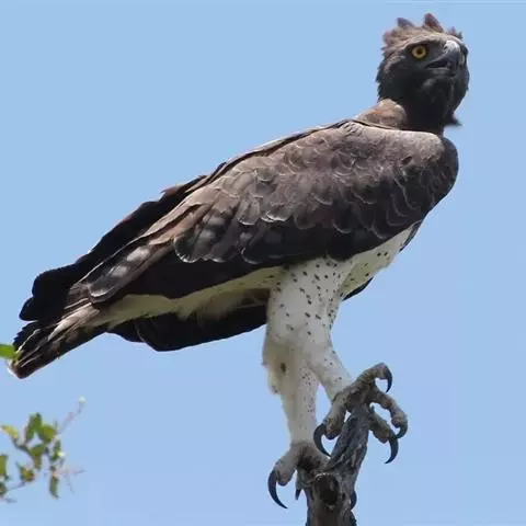 苍鹰是中小型猛禽。体长可达60厘米,翼展约1.3米。头顶、枕和头侧黑褐色,枕部有白羽尖,…