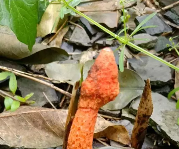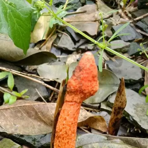 蛇头菌学名为“Mutinus Caninus”,可以称得上是最丑陋的菌类。蛇头菌菌柄呈圆柱形,菌盖呈鲜红色,菌盖顶端长有恶臭气味的粘稠状孢子。