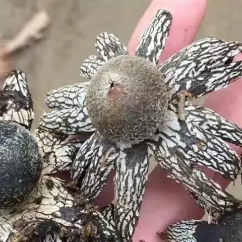 地星,中药名。为地星科真菌硬皮地星Geastrum hygrometricum Pers.和尖顶地星Geastrum triplexFisch.的子实体。硬皮地星分布于东北、华北、西北、华东、中南、西南及西藏等地。尖顶地星分布于东北、华北、西北、西南及西藏等地。具有清肺,利咽,解毒,消肿,止血之功效。常用于咳嗽,咽喉肿痛,痈肿疮毒,冻疮流水,吐血,衄血,外伤出血。日本涉江长伯《西园菌谱》载:“状似马勃,大如弹丸及粉团,色似松露,嫩时食似松露;老则自剖为瓣花,内赤有指头大者,弹之出黄粉,若误入耳,则令人聋。”经《新华本草纲要》第3册考证,认为该记载即指本品,但是否致聋,尚待考。
