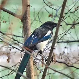 喜鹊:是鸦科、鹊属的一种鸟类。共有11个亚种。体长40-50厘米,雌雄羽色相似,…