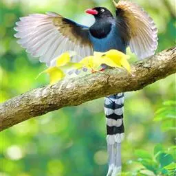 台湾蓝鹊:体长64至65厘米,翼展18至21厘米,尾长约40厘米,尾羽长占了总体长的三分之二。…