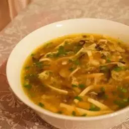 将辣椒、花椒、豆瓣酱、姜、蒜、色拉油放入锅中,用小火煸炒香,加汤熬制后,捞出渣,然后放入味精、白糖、醋等调料。 将主辅料切片、改刀、飞水,加入熬好的红汤汁内,烧开后装入盛器,撒入葱花。 将色拉油烧热,放入花椒、辣椒,炝出香味,迅速浇在上面即成。
