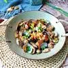 4、苦苣,生菜洗干净放入盆底,锅中放入1汤匙(15ml)的油,待烧至五成热时放入大葱丝爆香,随后放入黄豆芽和盐1/2茶匙(3g)翻炒约3分钟,再盛入盆中作底菜。