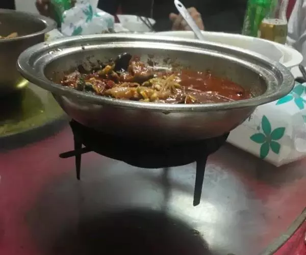 5、火锅底料用水化开,放入锅内烧沸熬味;