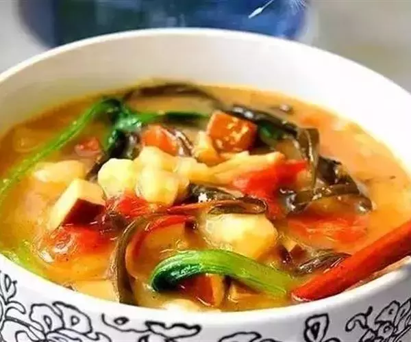 主料:鸭血、熟制牛肚、牛百叶、盐方火腿、黄豆芽