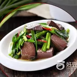 1、 将鸭血切成条块,入沸水氽煮后捞出;